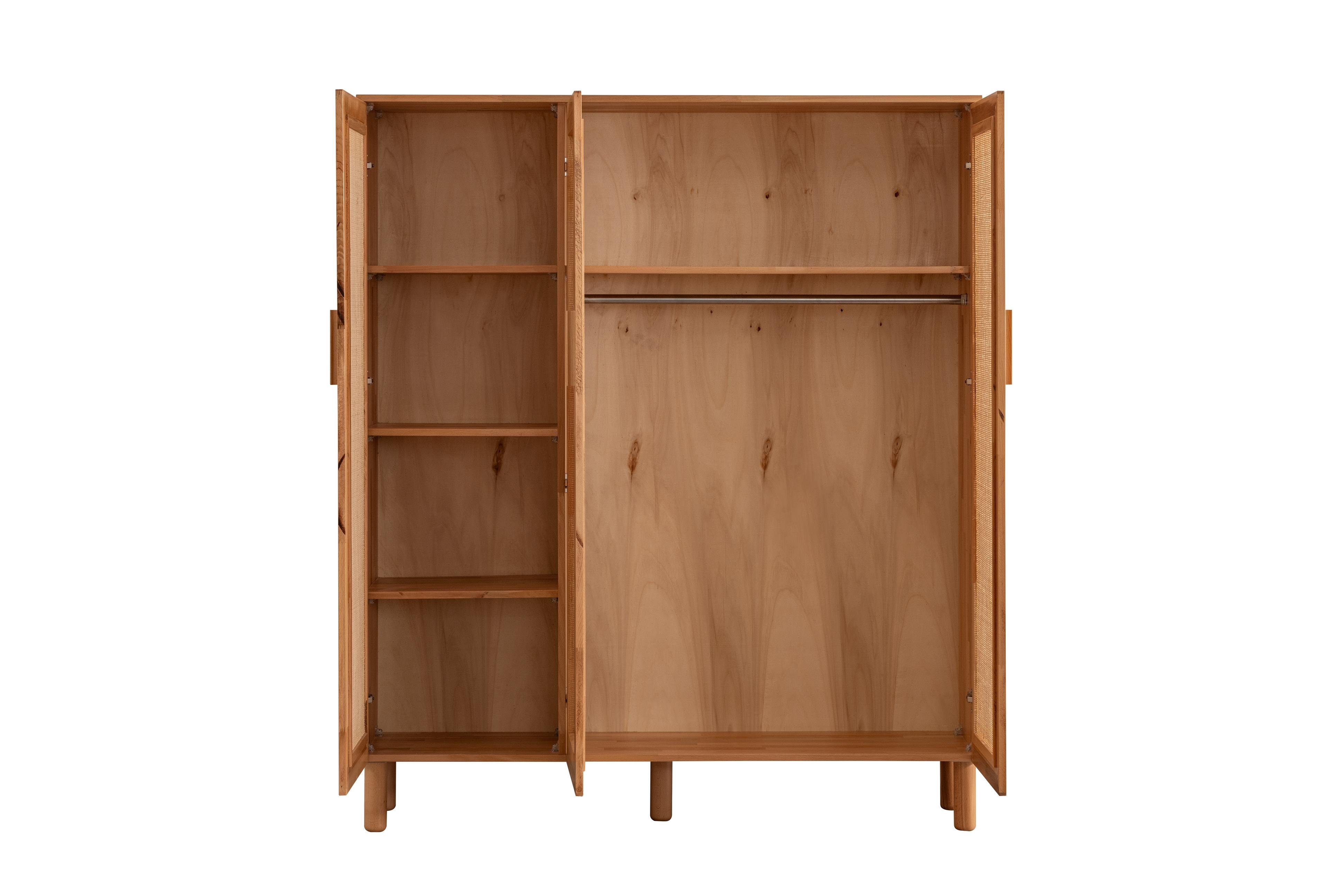 Der dreitürige Kleiderschrank Artemis bietet viel Stauraum und ist eine stilvolle Aufbewahrungslösung, die die elegante Maserung des natürlichen Buchenholzes hervorhebt. Seine naturfarbene Oberfläche verleiht dem Raum Wärme und Weite, während seine klaren Linien den modernen skandinavischen Stil widerspiegeln.